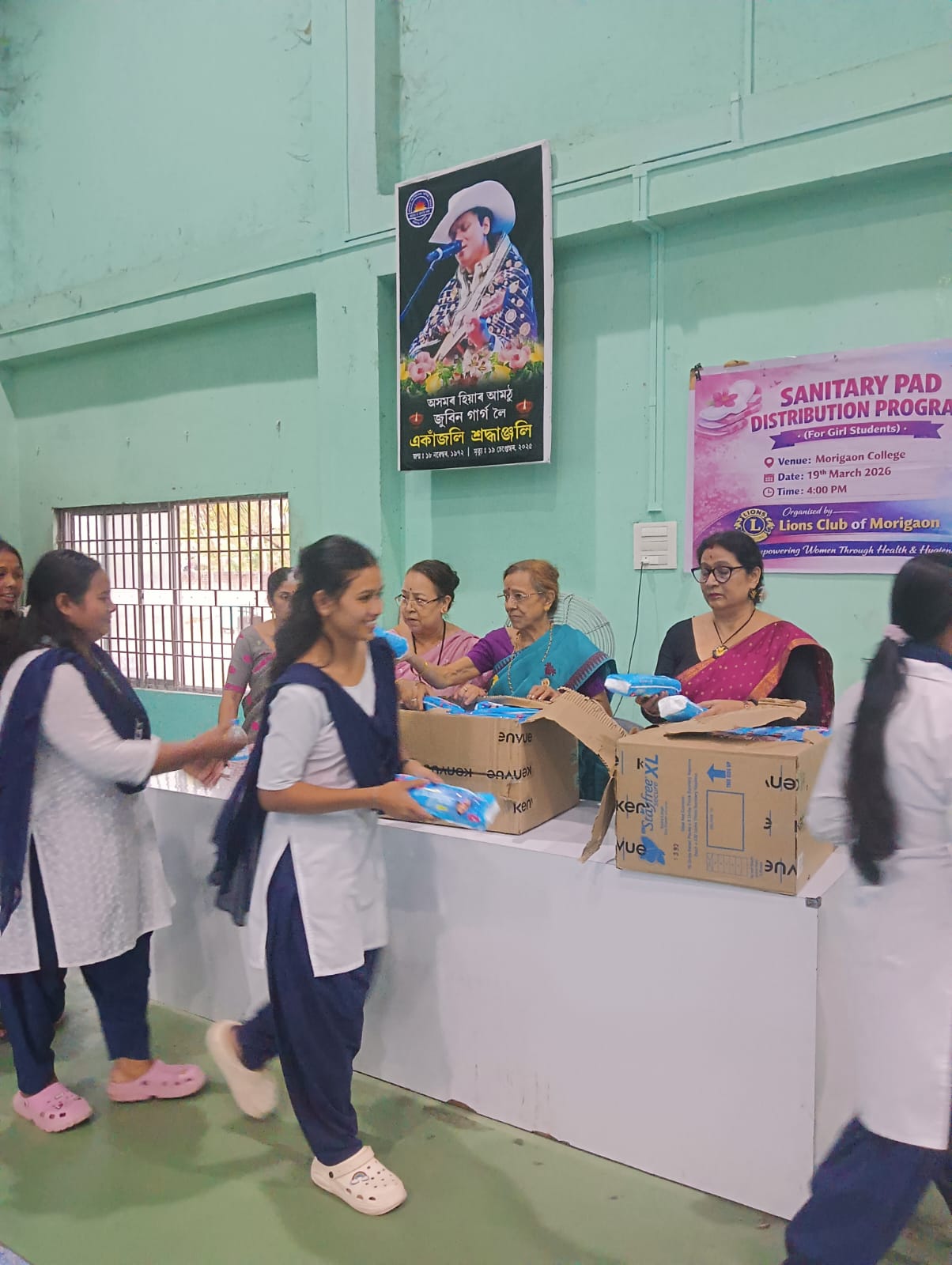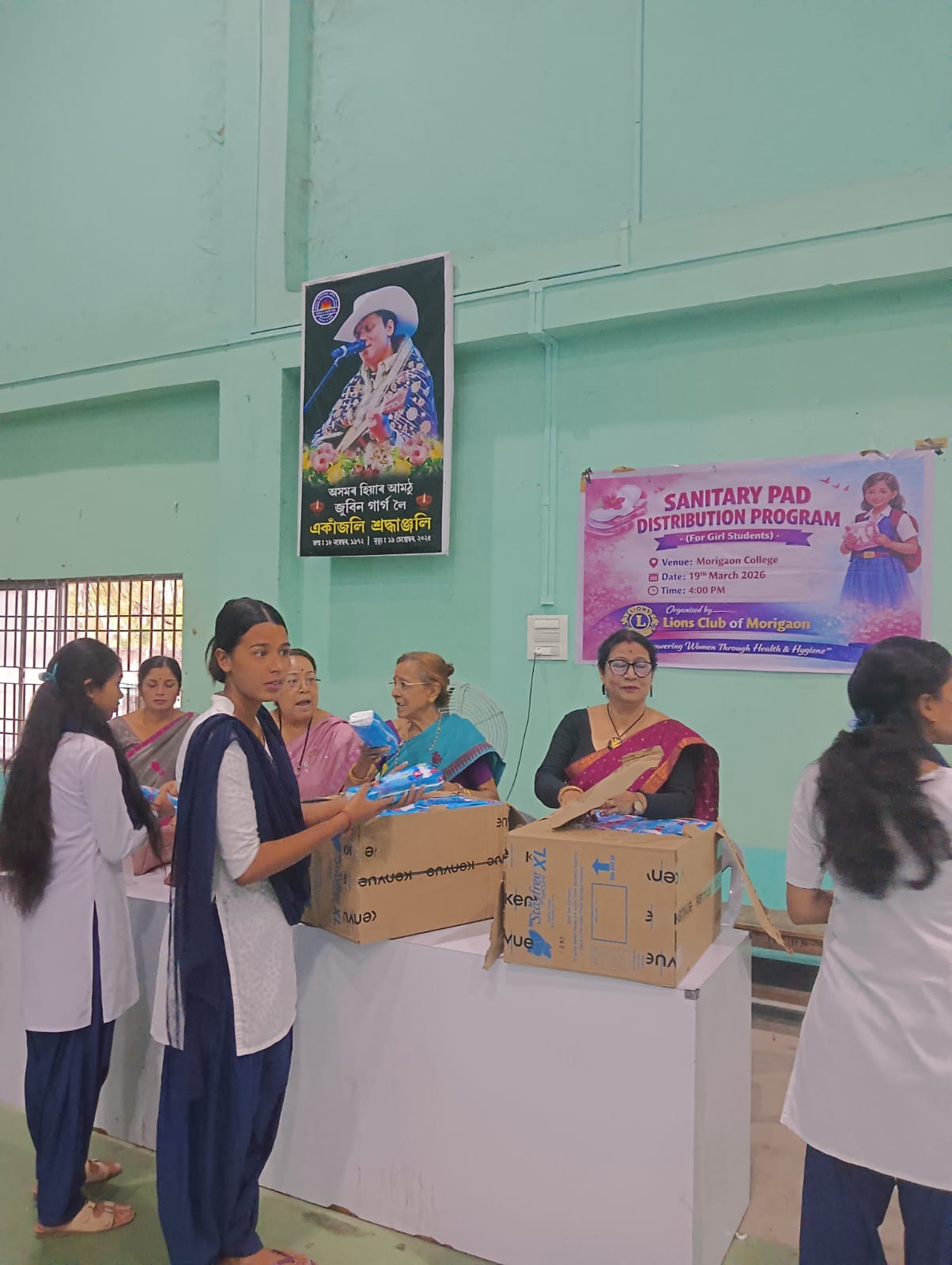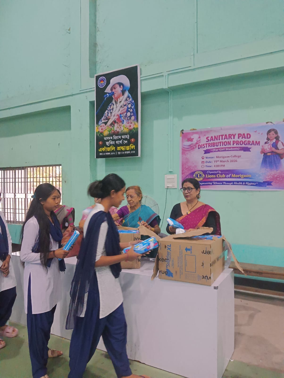 The Lions Club of Morigaon organized a Sanitary Pad Distribution Program on 19th March 2026 at Morigaon College, as part of its initiative to promote safety, hygiene, and well-being among girl students.